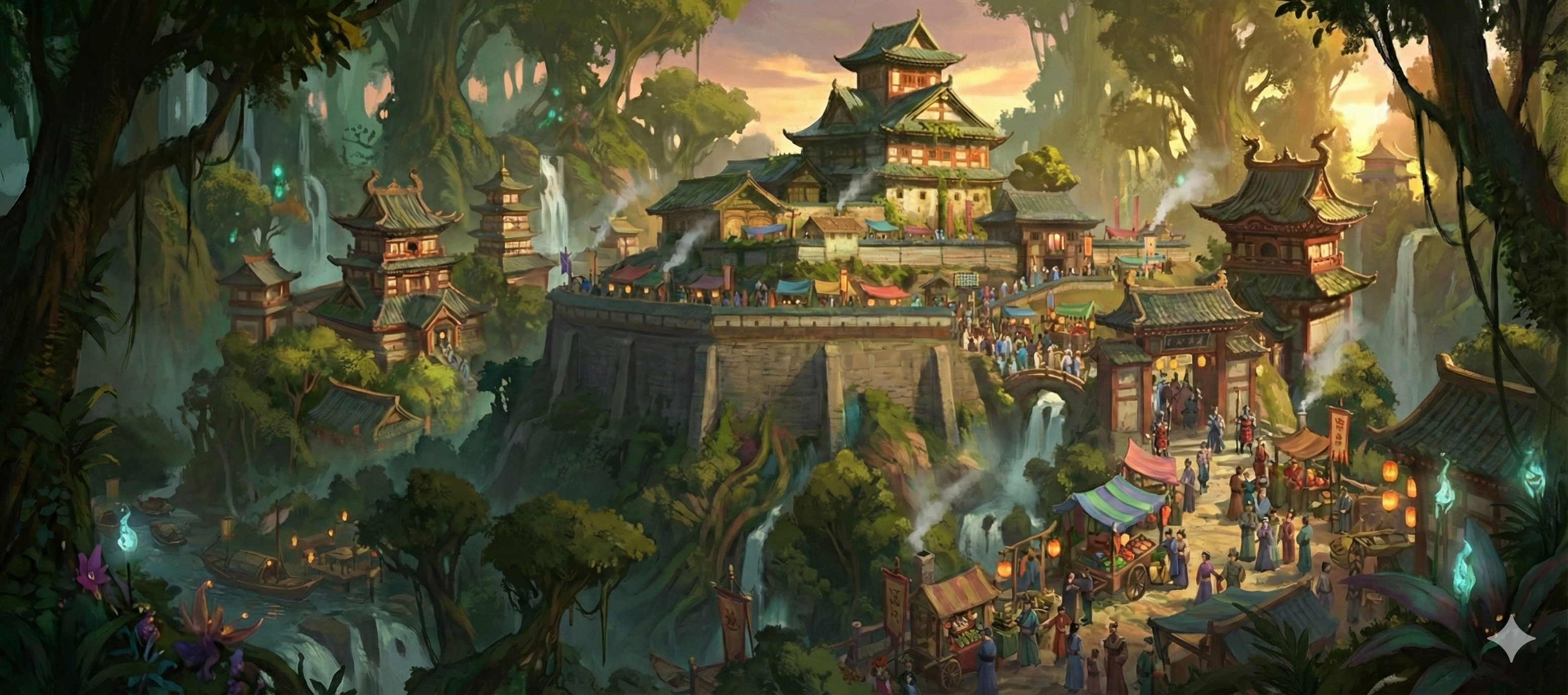 And in the middle of it all, on a small hill where the waterfalls break and the jungle opens, is Naelyrion, the seat of King Nauvengar and his kingdom.